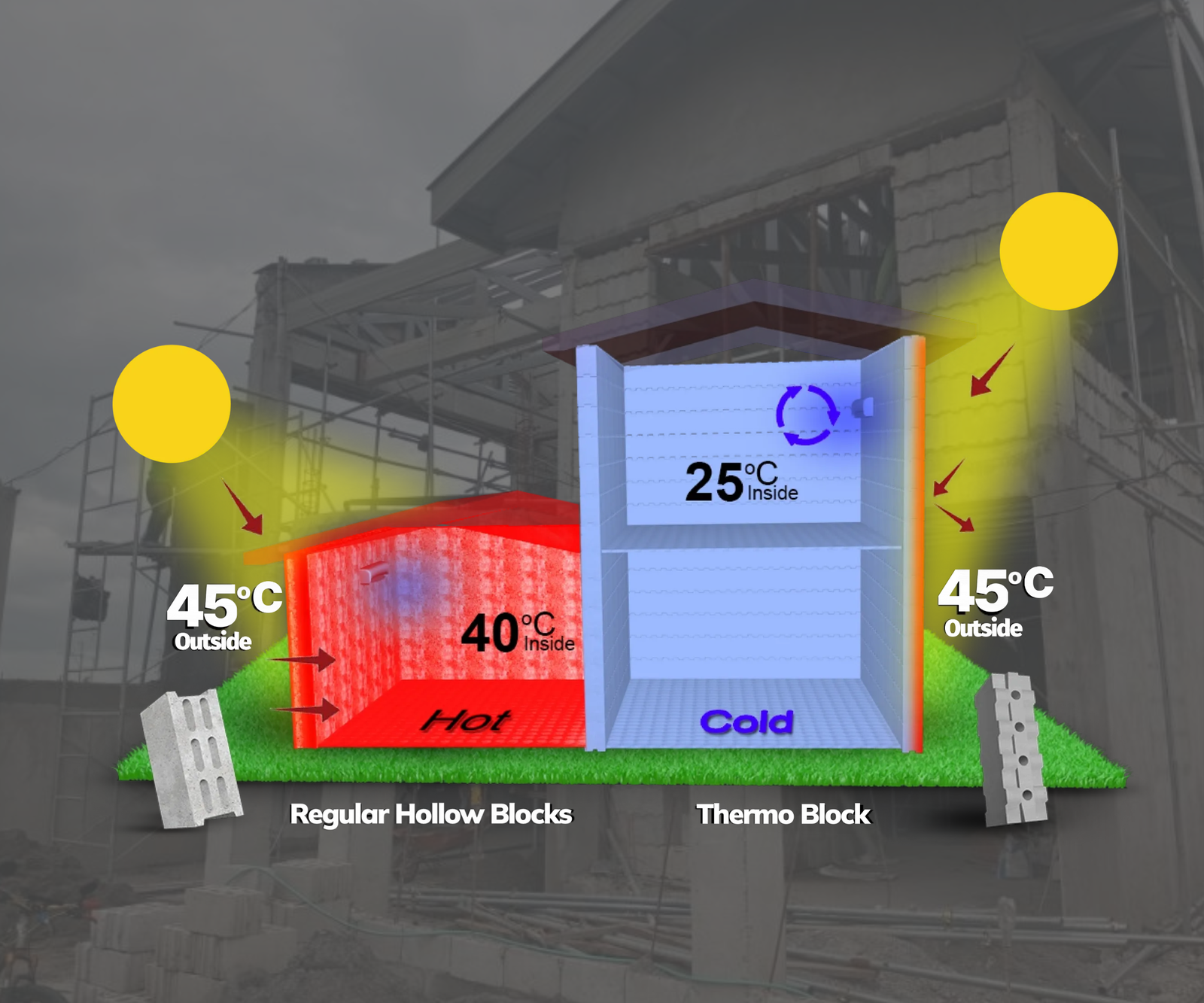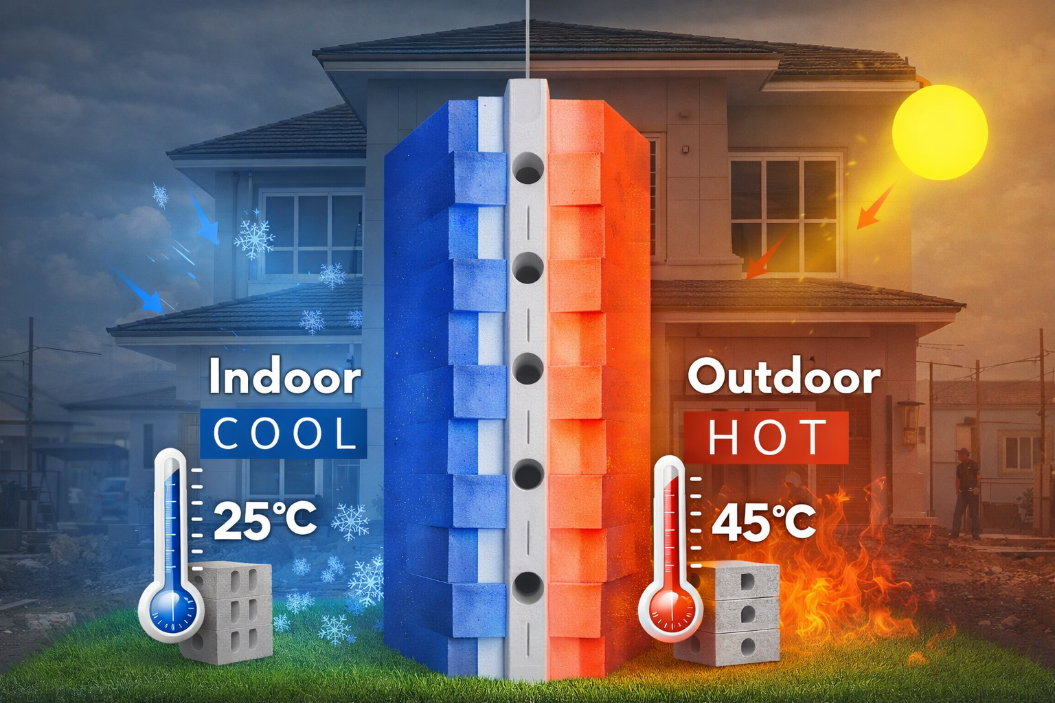 Traditional walls trap heat and drive up aircon costs. With ThermoBlock, you save thousands of pesos yearly on electricity bills while enjoying natural indoor comfort.